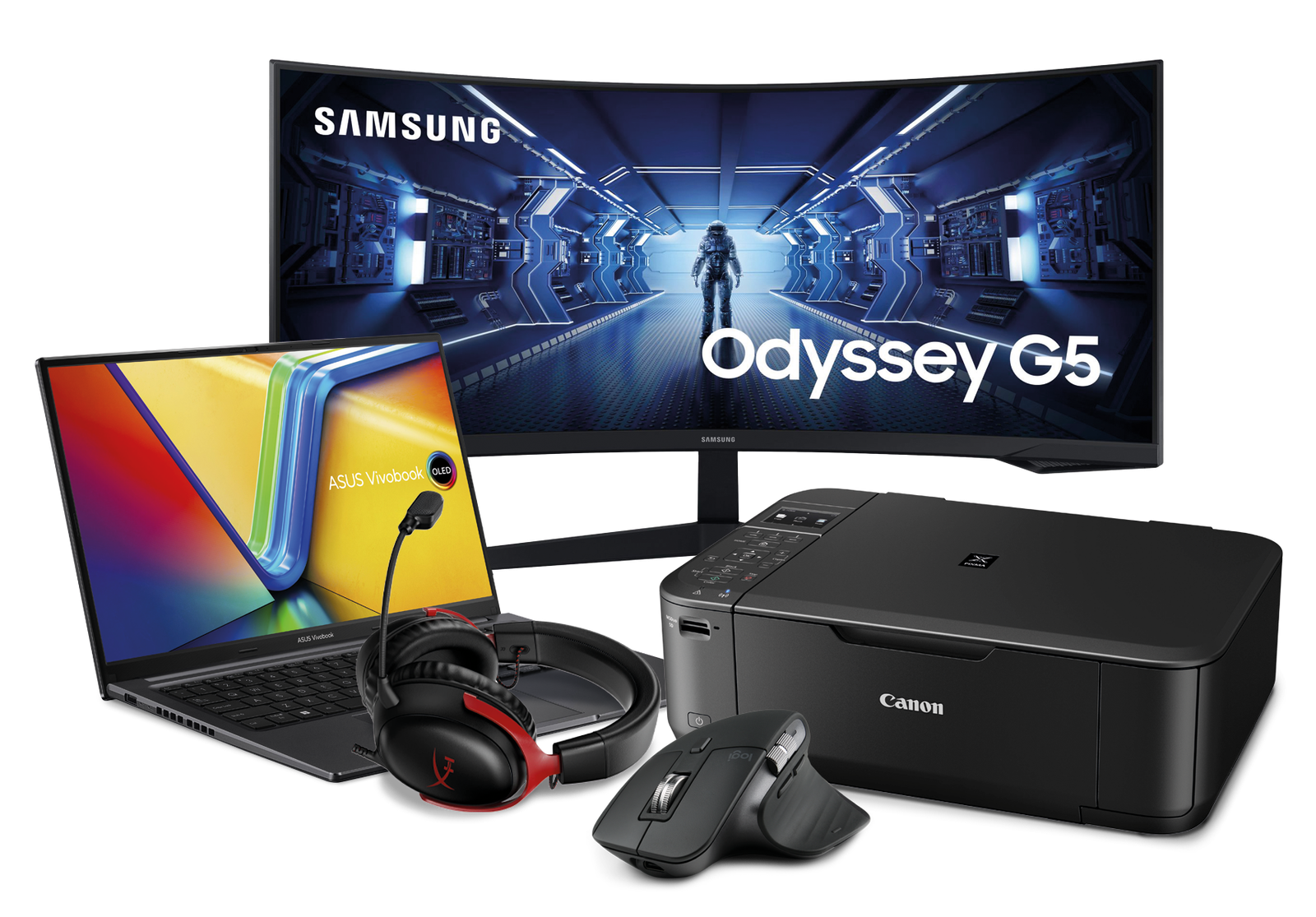 Ordinateurs portables et fixes, imprimantes, périphériques et accessoires.